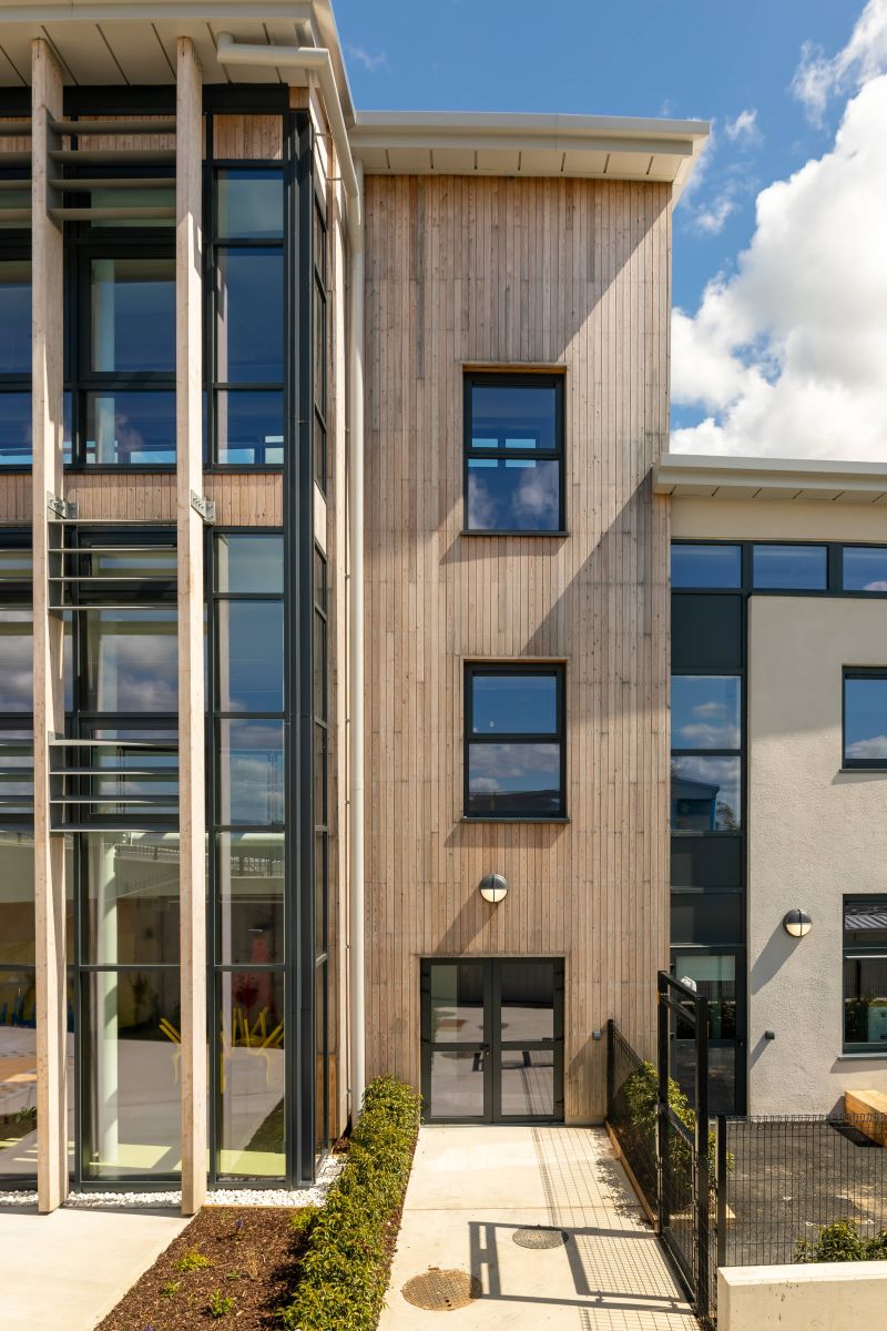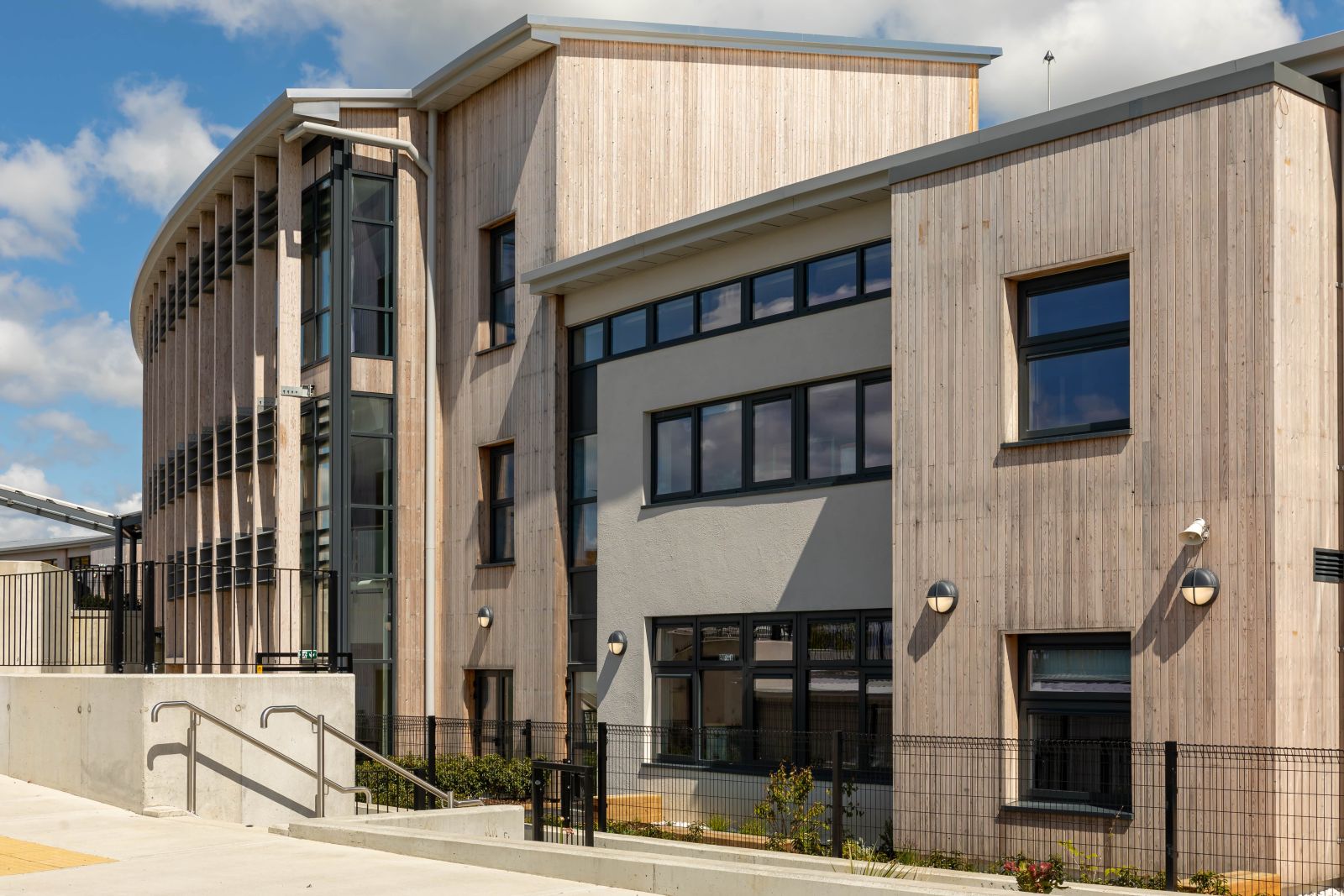 This new distinctive curved three-storey special school build provides 5940m2 of creative and safe learning spaces for students with a moderate or profound learning disability. The spaces included 20 classrooms with en-suite toilets, clinician suite, horticulture room, sensory play areas, woodwork room, home economics room, music room, library, art room, gym, GP Hall, commercial kitchen and hydrotherapy suite with pool and changing areas.